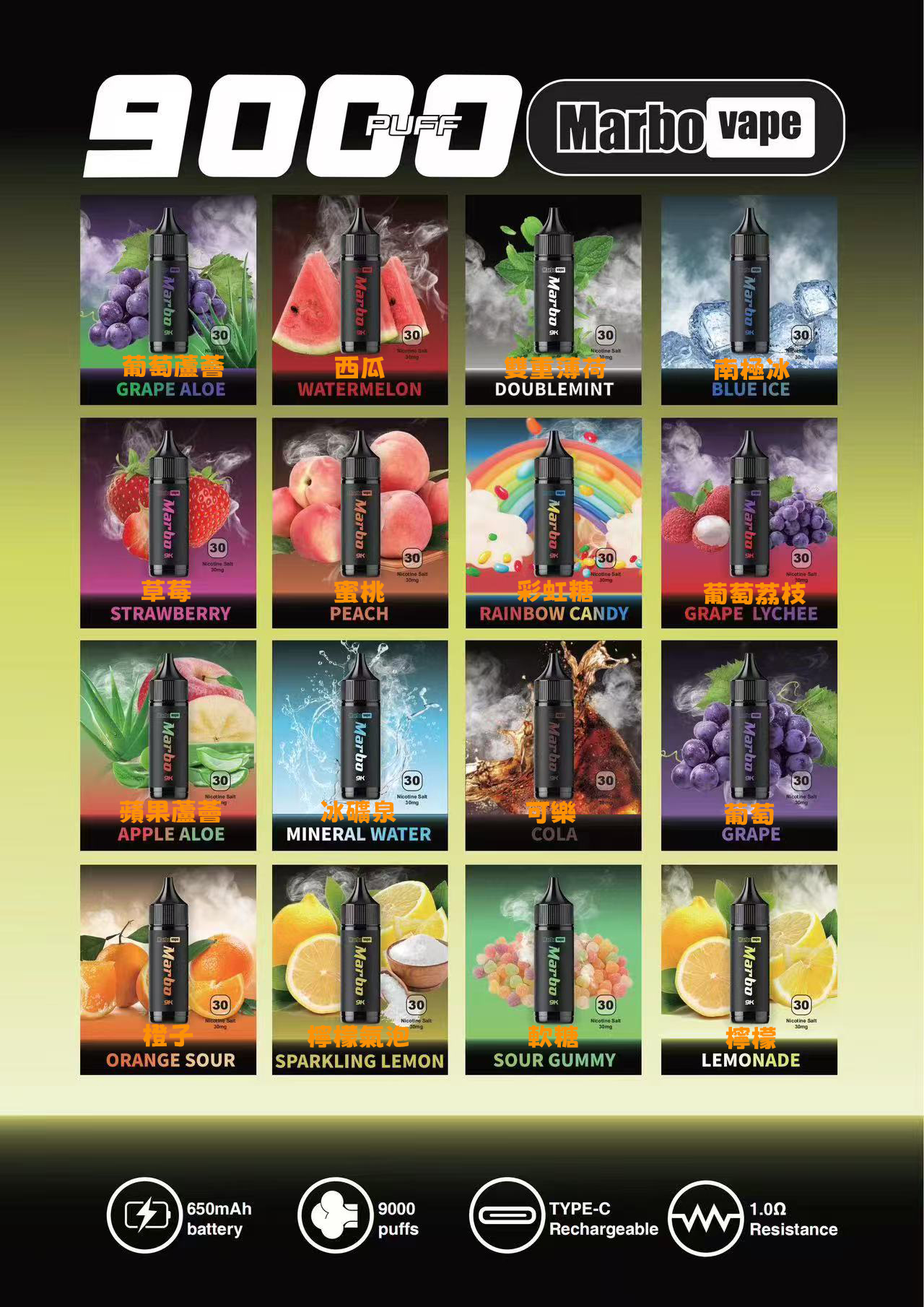 Marbo Bar 泰國熱銷 9000口拋棄式 Mesh 網狀霧化芯爆發濃郁口感 14ml 大容量 自定義可調氣流設計 全台現貨秒發