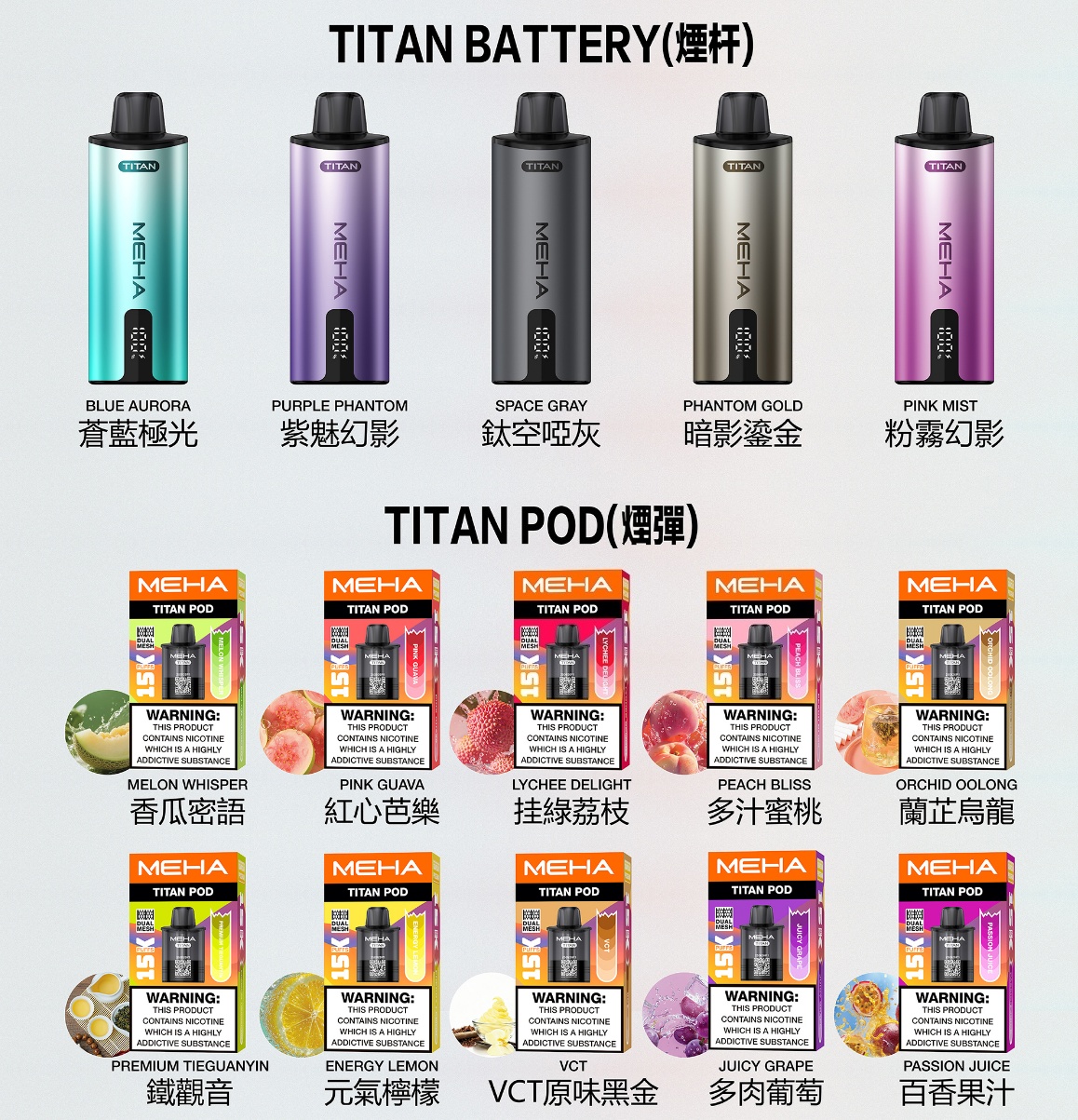 🍇 MEHA TITAN 專用彈:15ml 巨量裝 x 高性能 Mesh 芯,開啟「現摘果香」的味蕾暴擊!